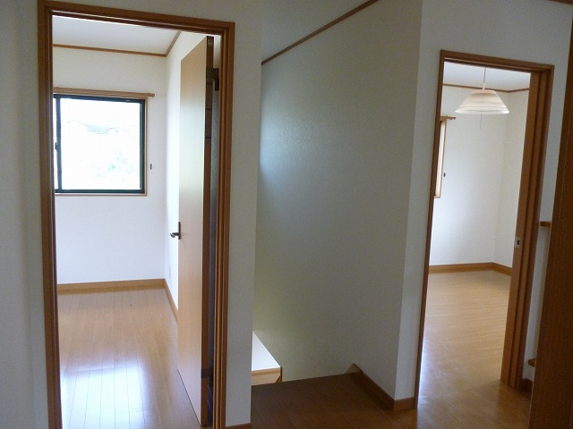 2つの洋室(左5畳、右側7.5畳)の間に一階へつながる階段があります。